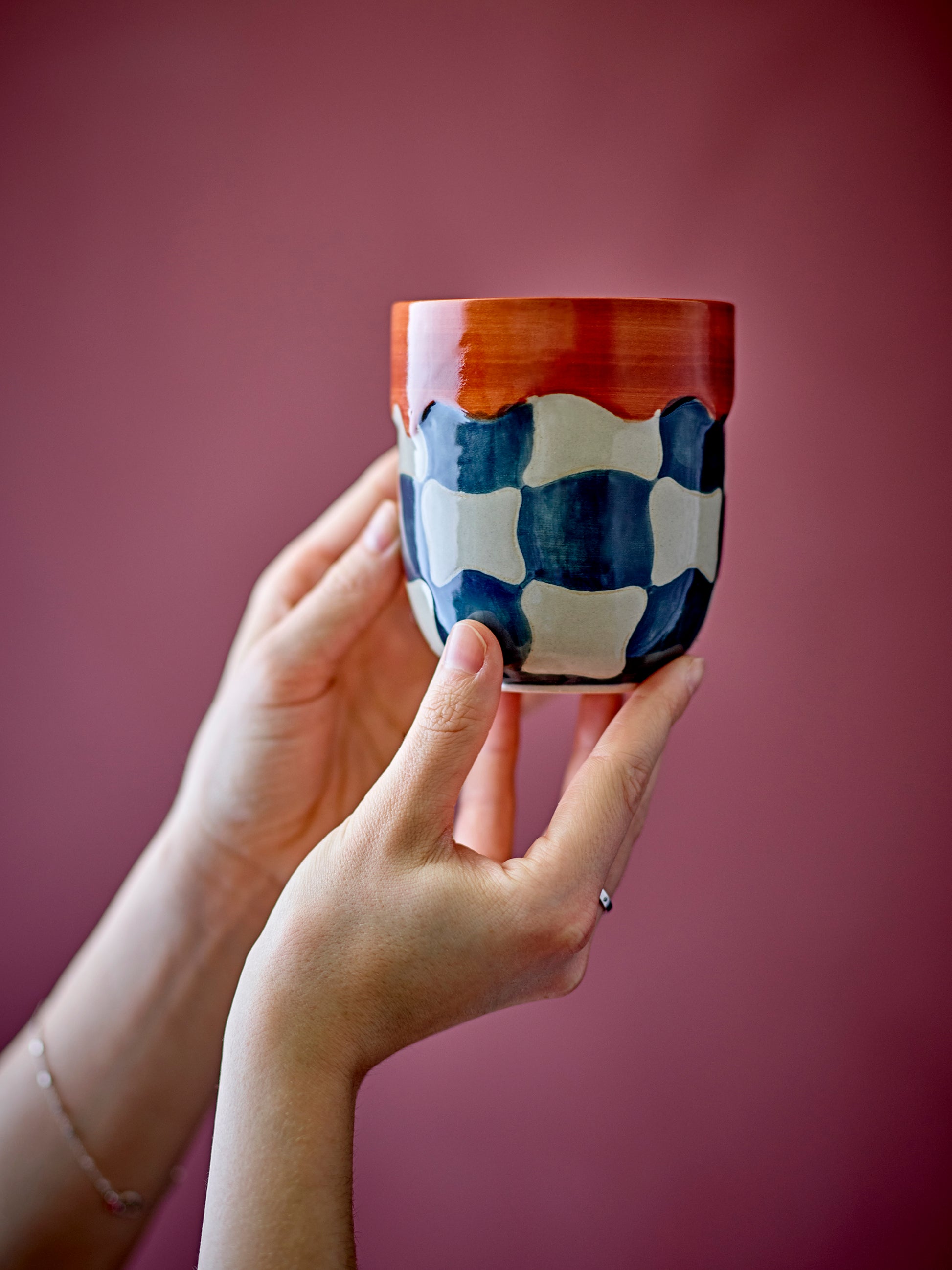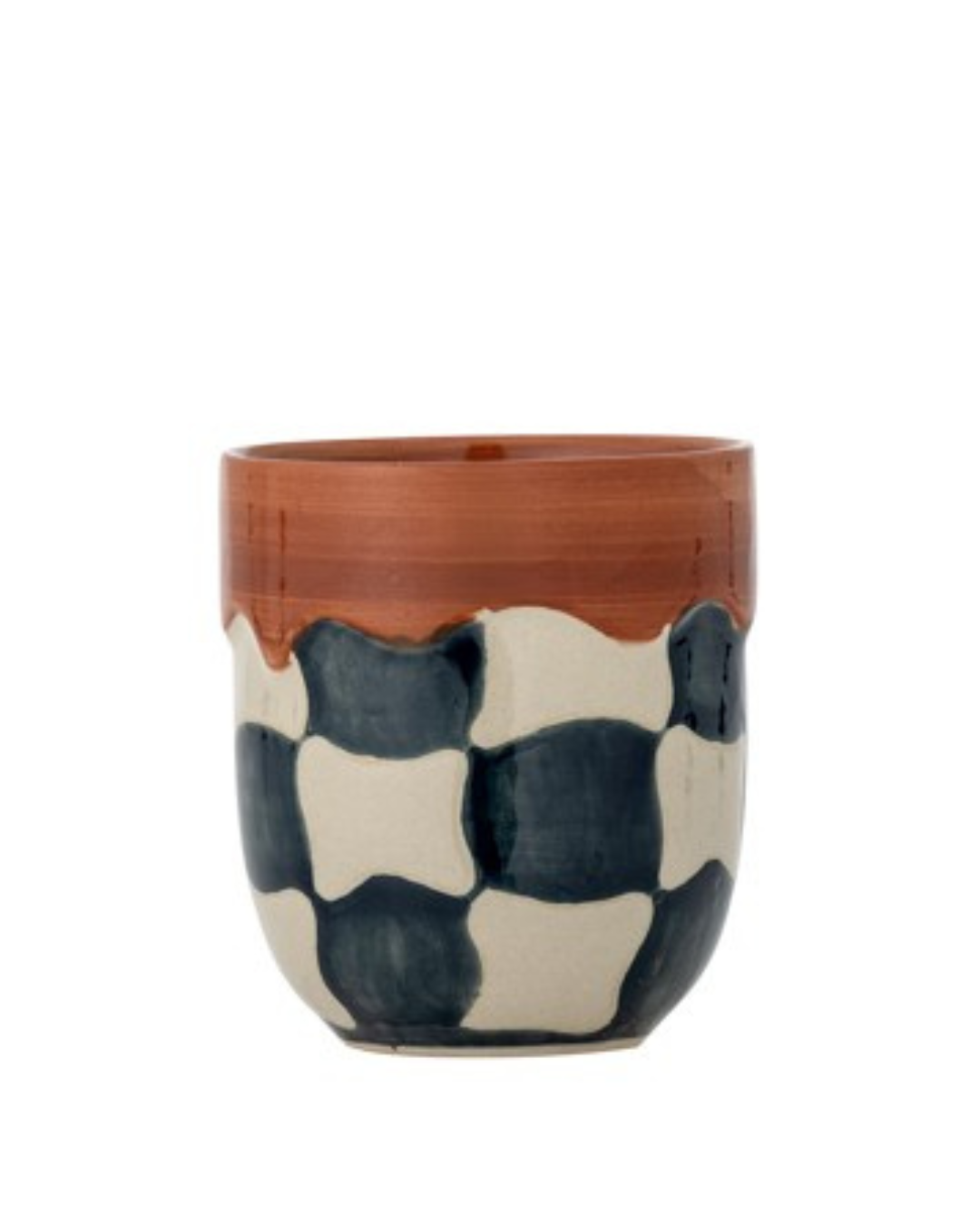Bloomingvilleのチェックカップは、手描きデコが素敵なストーンウェア製のカップです。