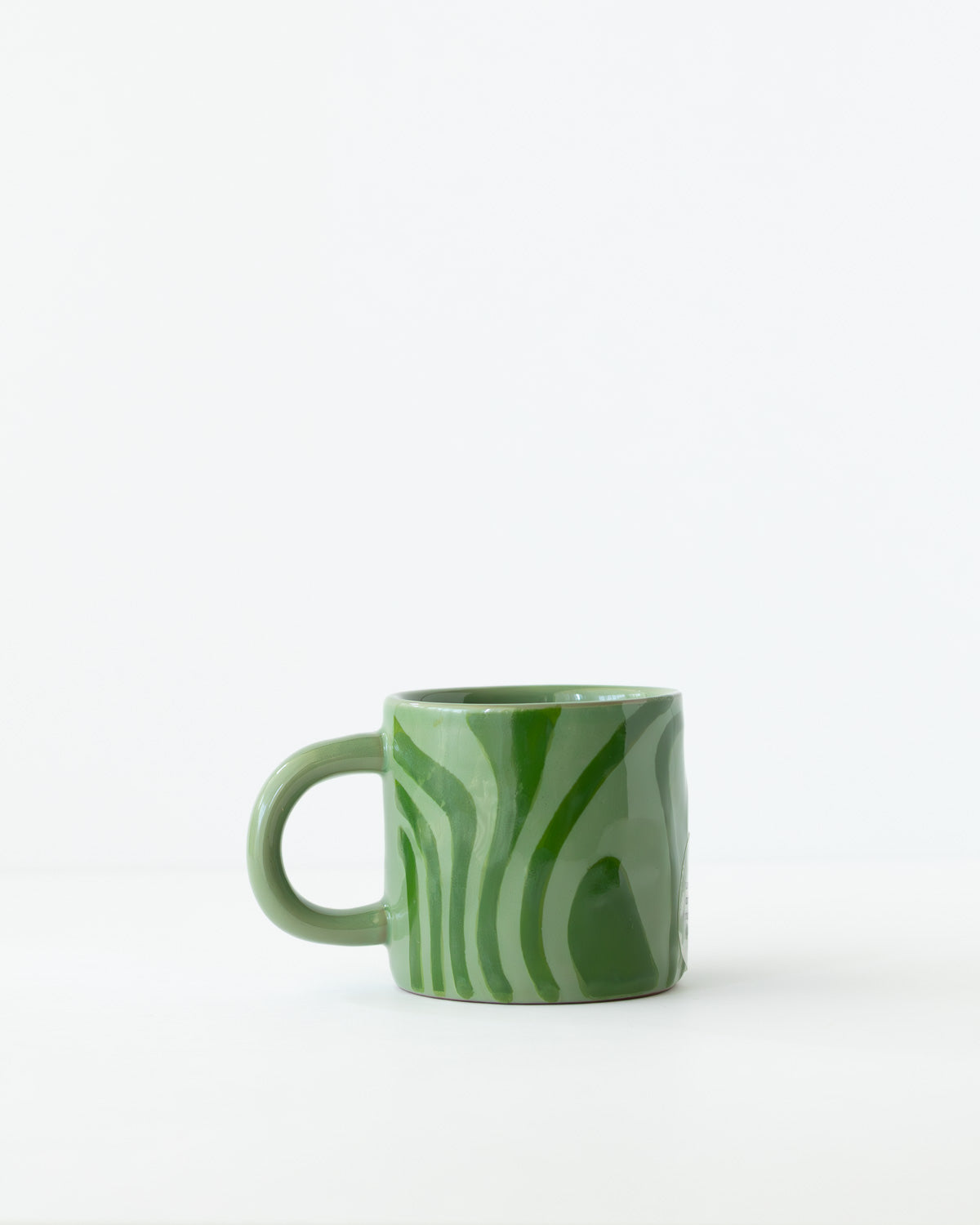 BloomingvilleのNinka マグ。落ち着いた色合いのレトロなデザインで、コーヒーや紅茶にちょうどいい一杯サイズです。※手作り仕上げのため、色味や柄の出方には個体差があります。