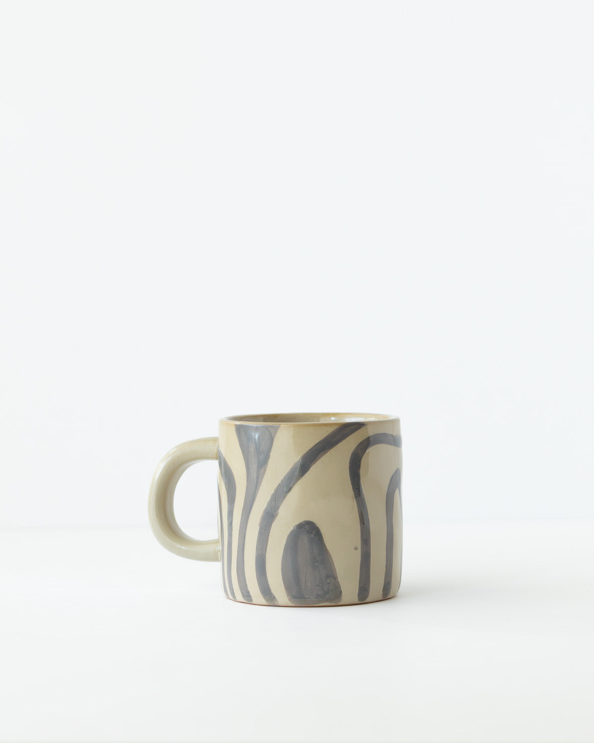 BloomingvilleのNinka マグ。落ち着いた色合いのレトロなデザインで、コーヒーや紅茶にちょうどいい一杯サイズです。※手作り仕上げのため、色味や柄の出方には個体差があります。